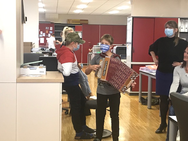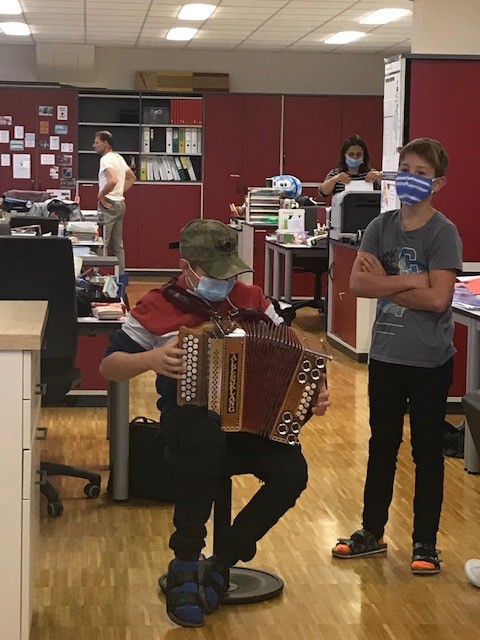 Das war einmal eine etwas andere Pause. Korbinian (1a) und Xaver (1s) gaben mit ihrem "Lieblingsgegenstand" ein Ständchen im Lehrerzimmer. Tolle Performance!