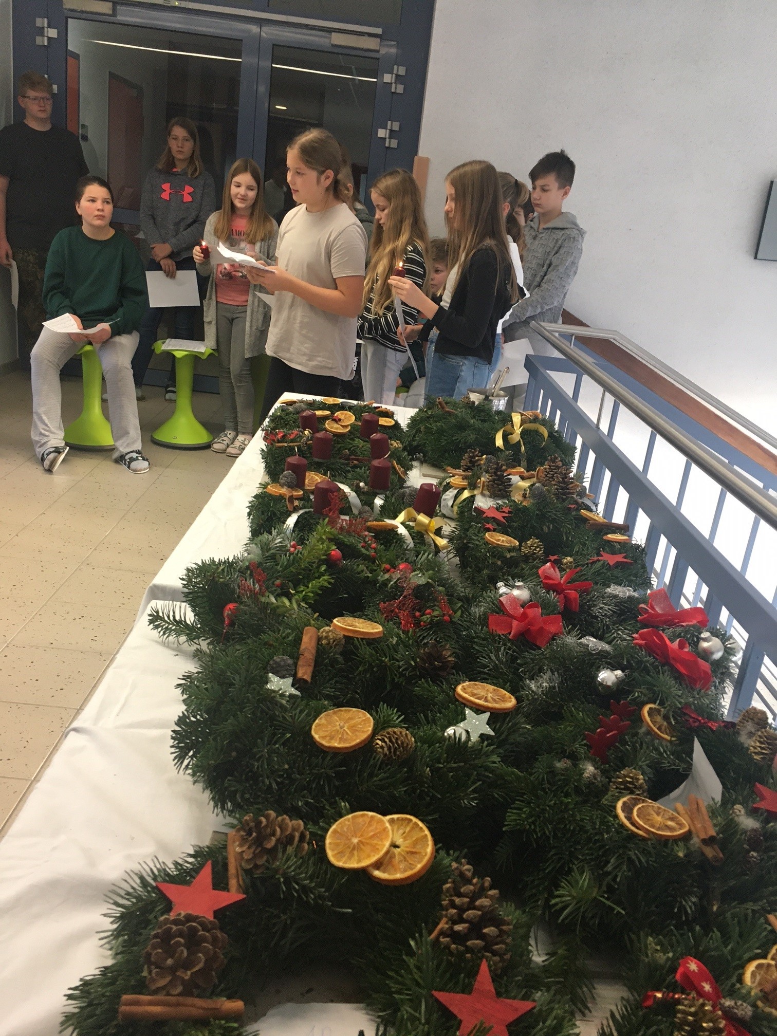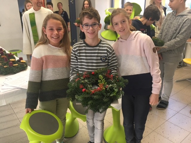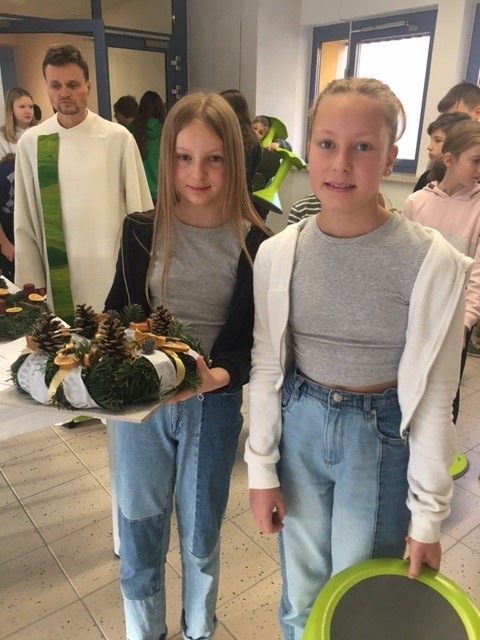 und er GTS Gruppe teil. Auch der große Adventkranz wurde gesegnet und erinnert uns durch die brennende(n) Kerze(n) an die Zeit des Wartens auf Weihnachten. Anschließend wurden die Kränze von den SchülerInnen in die Klassen getragen. Durch verschiedene andere Veranstaltungen (Adventandacht/Adventlesung/Weihnachtsbaum) wollen wir diese Zeit bewusst in der Schule begehen. Alle sind dazu herzlich eingeladen.