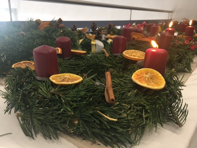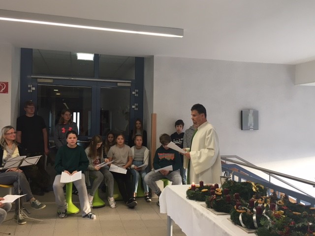 Advent. Zum Beginn des Advents wurden, wie jedes Jahr, die selbstgebundenen Adventkränze in einer festlichen Feier am Freitag den 25.11. gesegnet. Dazu nahmen Vertreter aus jeder Klasse